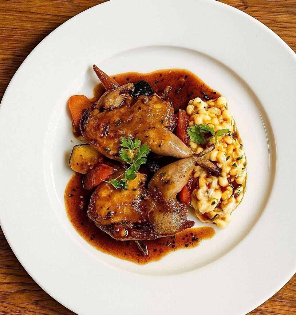 « La famille, c’est important, même et surtout quand elle est aussi étendue et fidèle que la clientèle de Georges Camuzet, chef et maître de maison rassembleur et proche de son terroir. Menus 25 € le midi, 38 € le soir, autour d’une cause commune: partage, bonne croque et bon vin, produits d’ici et manières d’aujourd’hui à forte valeur traditionnelle. Georges Camuzet travaille sur le marché de saison, aussi à l’aise avec le thon de Méditerranée qu’avec l’agneau du Quercy, les asperges sauce mousseline ou le canard du Sud-Ouest, le foie gras excellent ou la pintade et risotto. À la cave, tous les copains, Le Roc, Da Ros, Pacalet, Barroubio… »